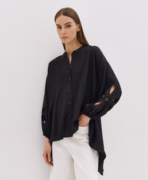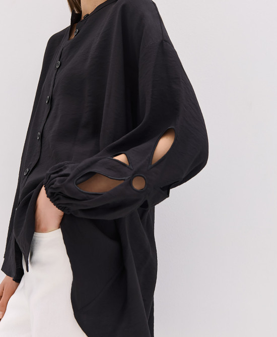 Name | Long Puffed Sleeve Solid Color Asymmetrical Hemline Casual Tops | ||