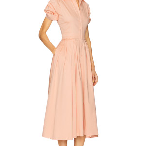 Custom Elegant V-Neckline Short Puff Sleeve Tie Waist Button-Through Front Casual Dress