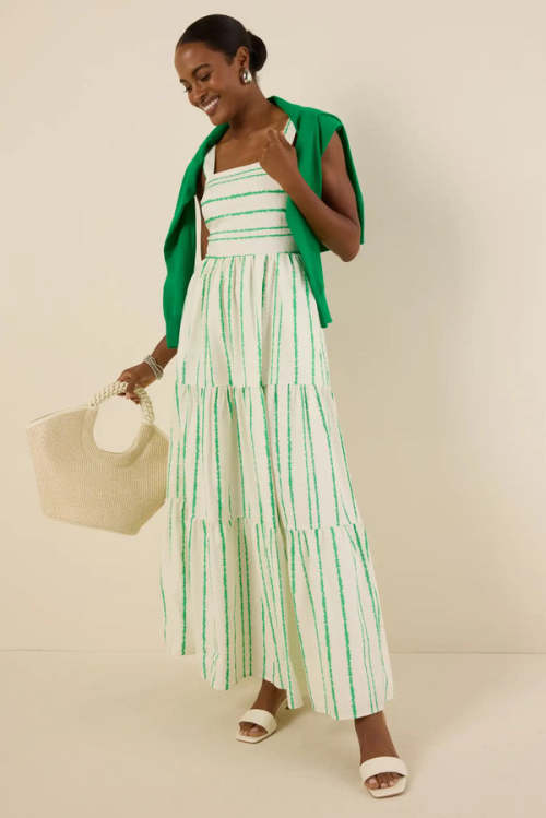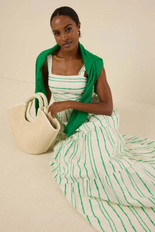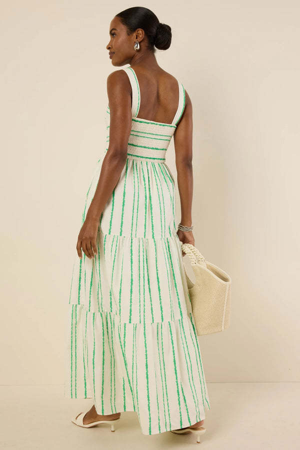 Daily Sample Square Neckline Camisole Allover Abstract Stripes Smocked Back Casual Dress