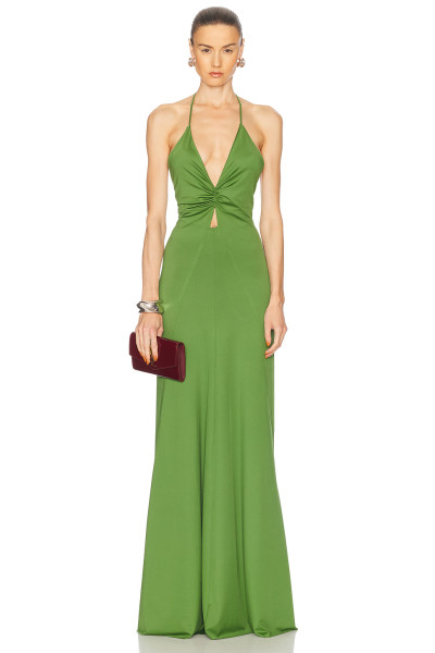 Waist Side and Back Cut Out Sexy Ruched GownWomen Deep V-Neck Sleeveless Lightweight Green Dress